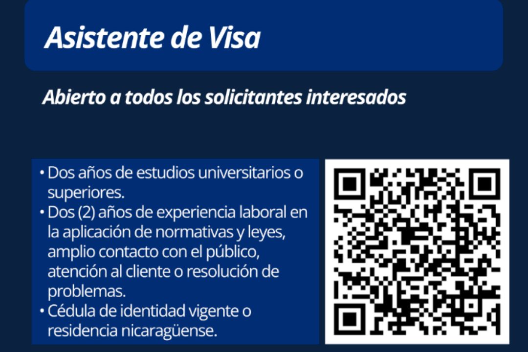 La embajada de Estados Unidos en Managua abrió una convocatoria para asistente de visa en la delegación diplomática ubicada en la capital de Nicaragua.