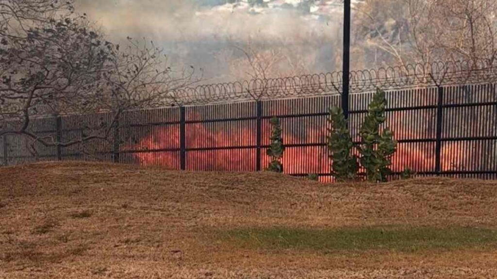 En las fotografías compartidas en X se observa a los bomberos sofocando las llamas, al parecer cerca de uno de los muros perimetrales.