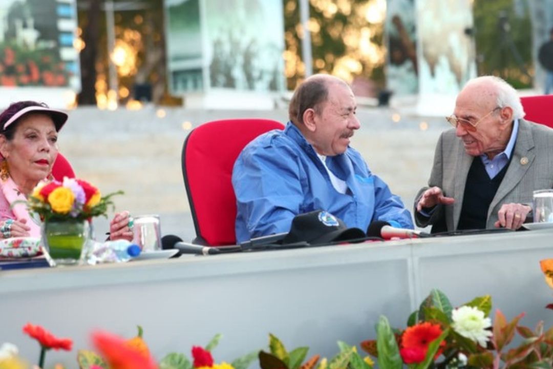 El codictador Daniel Ortega se vendió como un pacificador durante la entrega de la medalla «Cardenal Miguel», un premio que creó el régimen sandinista al instaurar el llamado «Día de la reconciliación y la paz», durante el acto en el que la recibió el exvicepresidenta Jaime Morales y su esposa Amparo Vásquez de Morales, este lunes 9 de febrero.
