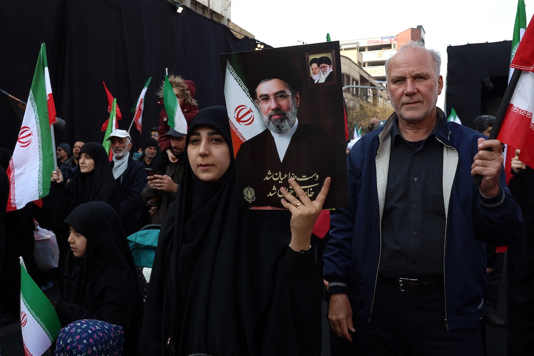 Miles de personas se concentraron en una céntrica plaza de Teherán para mostrar fidelidad al nuevo guía supremo, Mojtaba Jamenei, informaron periodistas de AFP.